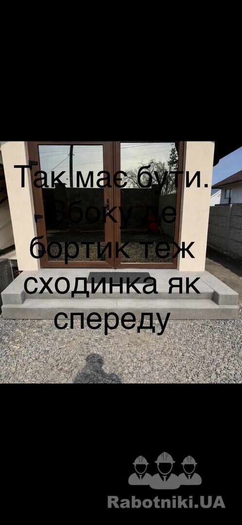 Заливка майданчика, сходинки, армування , опалубка. Збоку де бортник сходинка теж має бути.