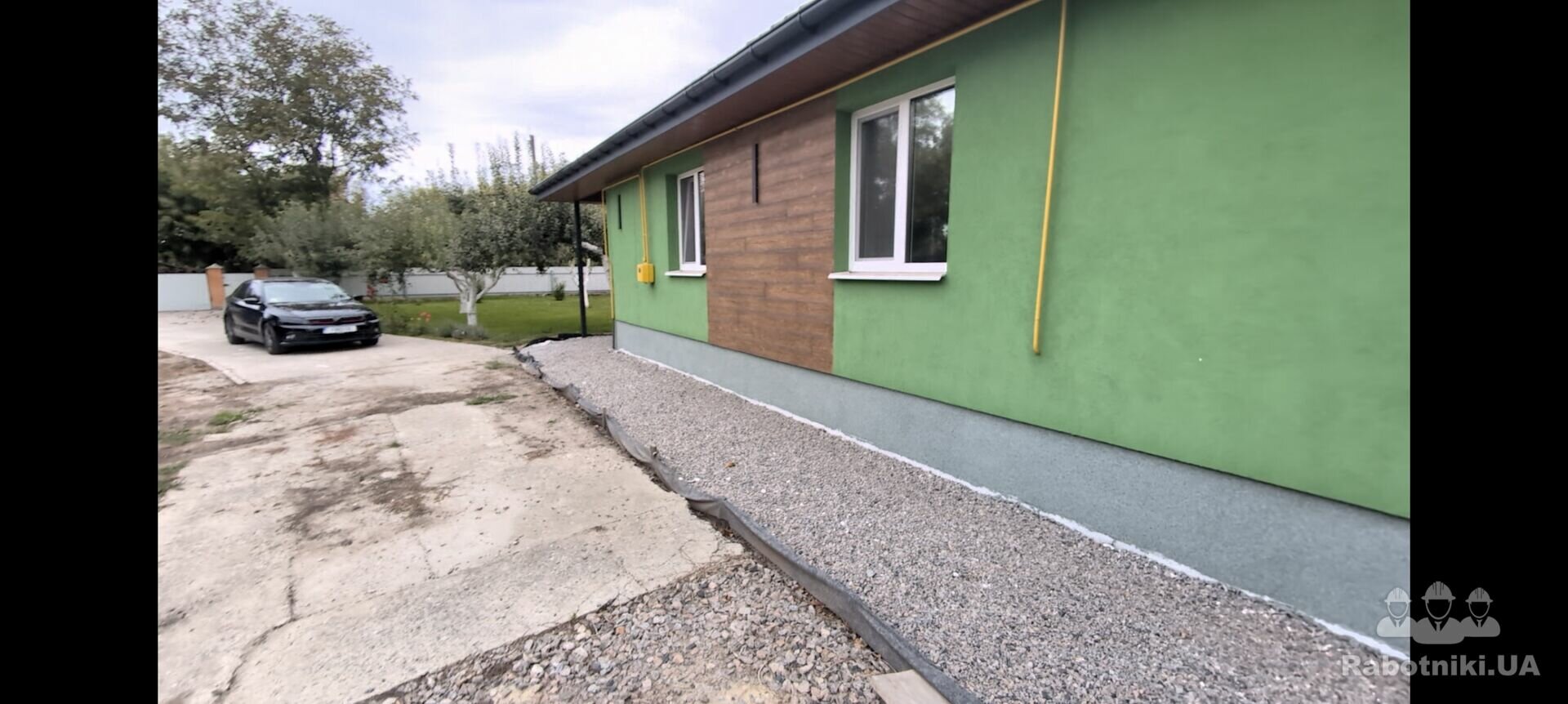 Приватний будинок, село Сидори Білоцерківський район. Вкладання бруківки сіті-мікс 6см товщ. з мікрофаскою на відмостцу по гранвідсіву (відмостка зроблена з використанням шиповидної мембрани , полістиролу і. т.д тому вода має дренажуватись і уходити в дренажні труби.)
