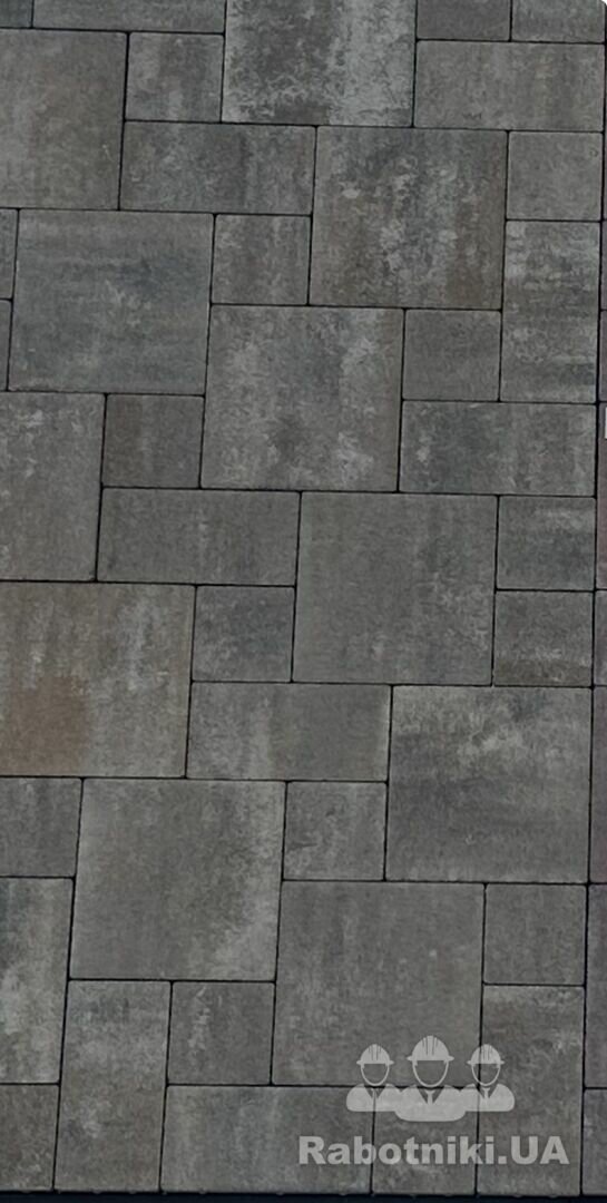 Потрібно підготувати основу, вкласти тротуарну плитку на доріжки та площадку (6х9 метрів), приблизна загальна площа 90 кв. м., приблизна довжина бордюрів 100 м. Бруківка Променад Unilux.