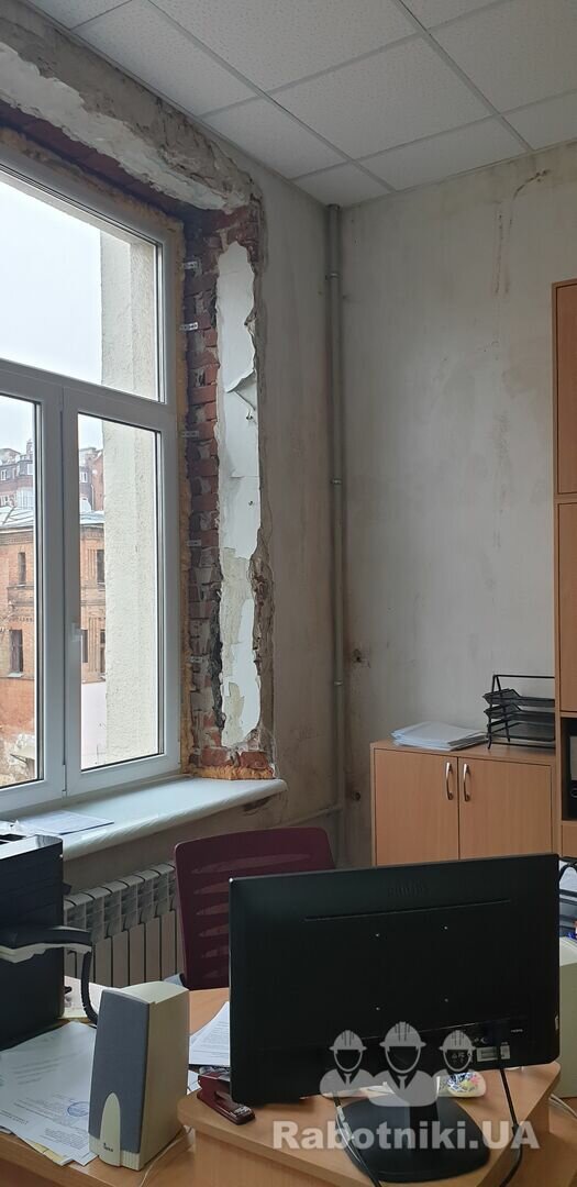 Необходимо отремонтировать комнаты (офис). Выполнить отбивку по драке, устройство г/к стены, откосы из г/к, шпаклевка стен, оклейка и окраска стен в/эмульсионной краской. Устройство потолка Армстронг. Высота 3,5 метра.