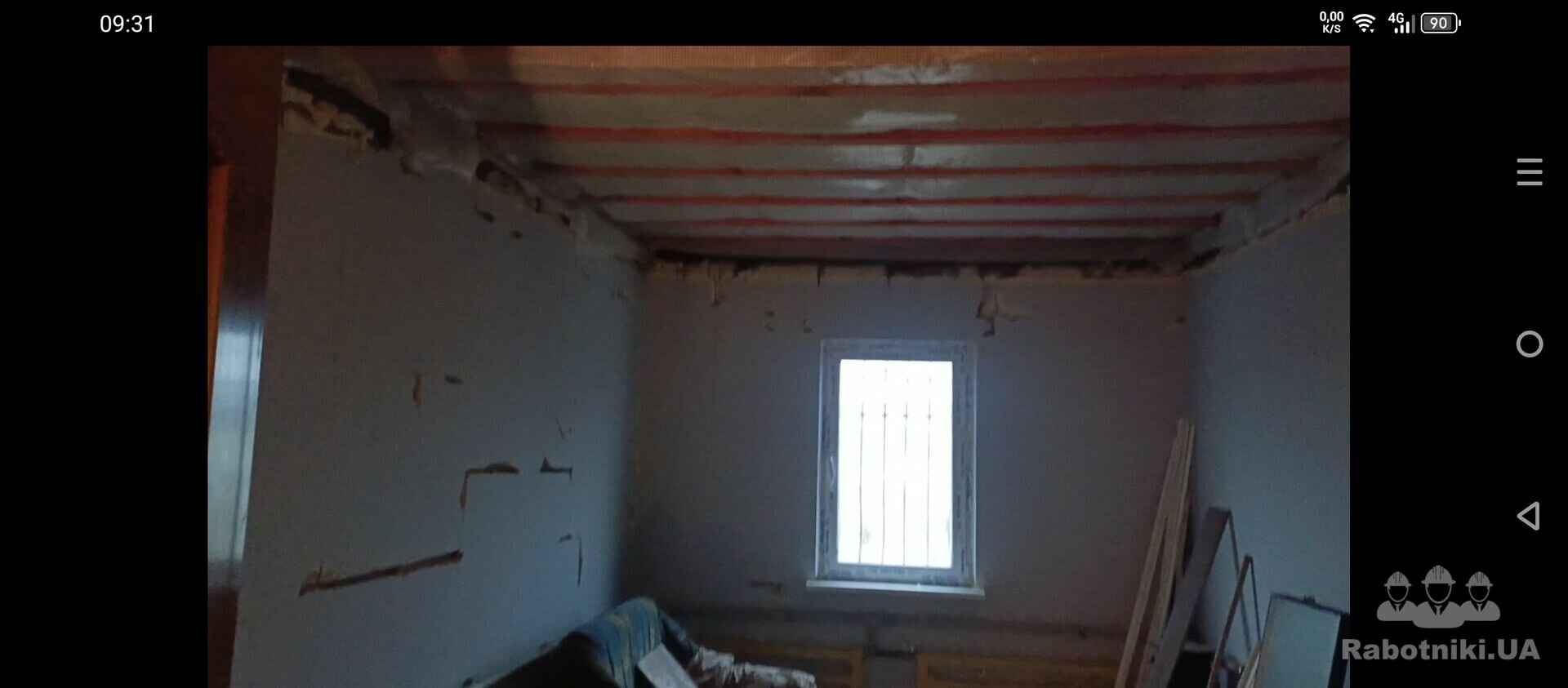 Необхідний косметичний ремонт стін,площа приміщення по підлозі 35кв.м (підштукатурити, пофарбувати, трохи вирівняти в місці армопоясу під армстронг, один відкос віконний).