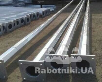 Встановити опори освітлення за допомогою автокрана. На місці посадки підготовлені забетоновані закладні шпильки. Кількість опор 4шт. Довжина 7 м