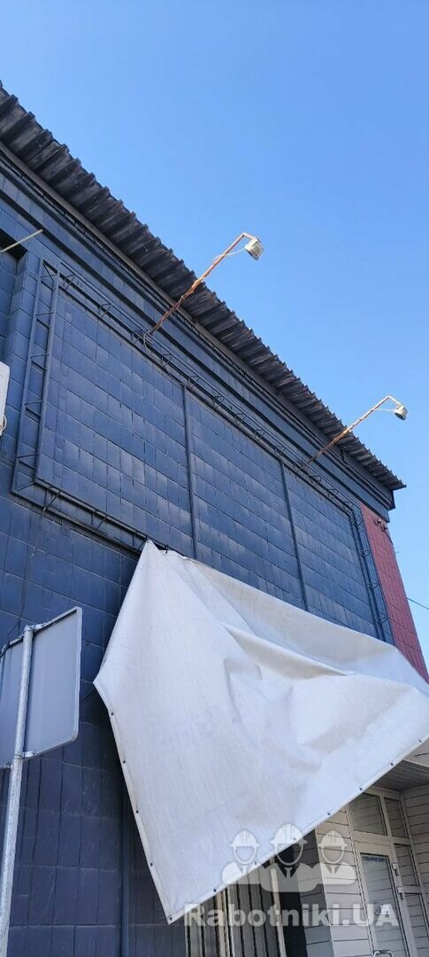 Встановити ы закрыпити банер на висоті орієнтовно 10 метрів. Ширина банеру орієнтовно 7 м Висота банеру орієнтовно 2 м Потрібна висока драбина,вишка або альпініст.