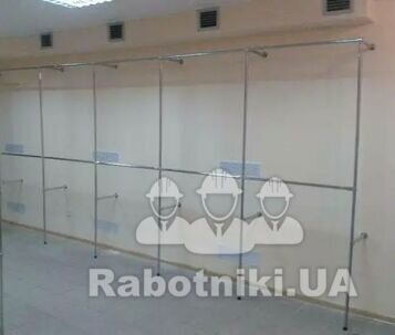Потрібно зібрати металеву констркуцію з хромованих труб і кріплень. Конструкція складається з 8 окремих стійок, з єднаних між собою горизонтальними трубами.