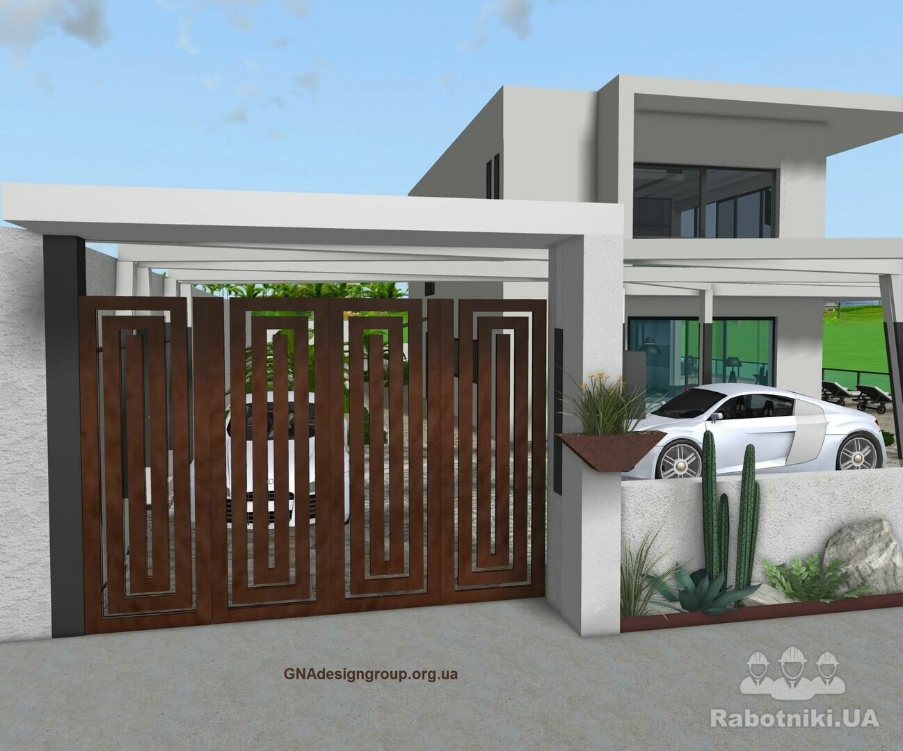 + розробку зонування/планування та проектування Ландшафтного дизайна та благоустрою території, тераси, накриття, альтанки, різноманітних зон відпочинку, вхідної/в їзної групи (паркану, хвіртки і т.д.), парковки (критої / відкритої), підбір рослин та тротуарної плитки, доріжок, моделювання індивідуальних локацій і т.д., 3д візуалізацію цього, 2д плани, освітлення і т.д.