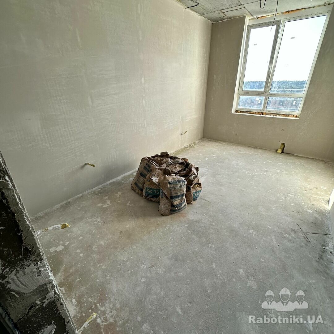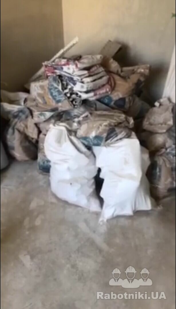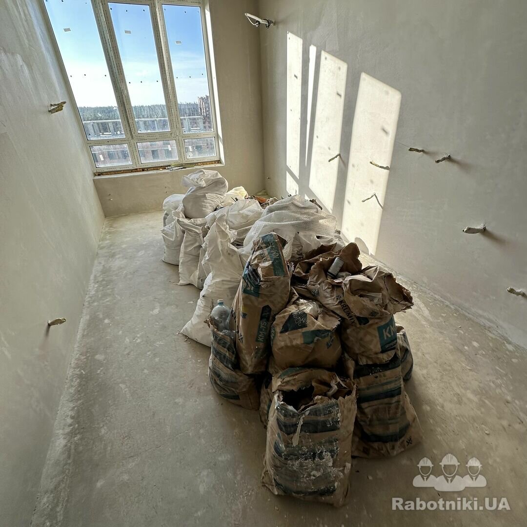 Вынос мусора после штукатурки, рядом с домом есть строительный контейнер, есть лифт, вывозить не нужно, правда перебои с электричеством, как у всех