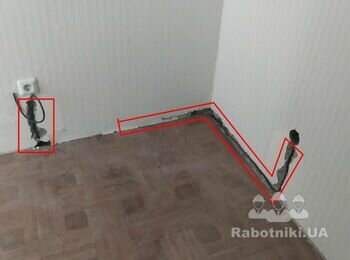 После демонтажа куска стены на проеме (см. фото), необходимо выровнять углы под 90, так как сам проем сделан небольшим раструбом. Также нужно заштукатурить старые розетки и пару штроб.
