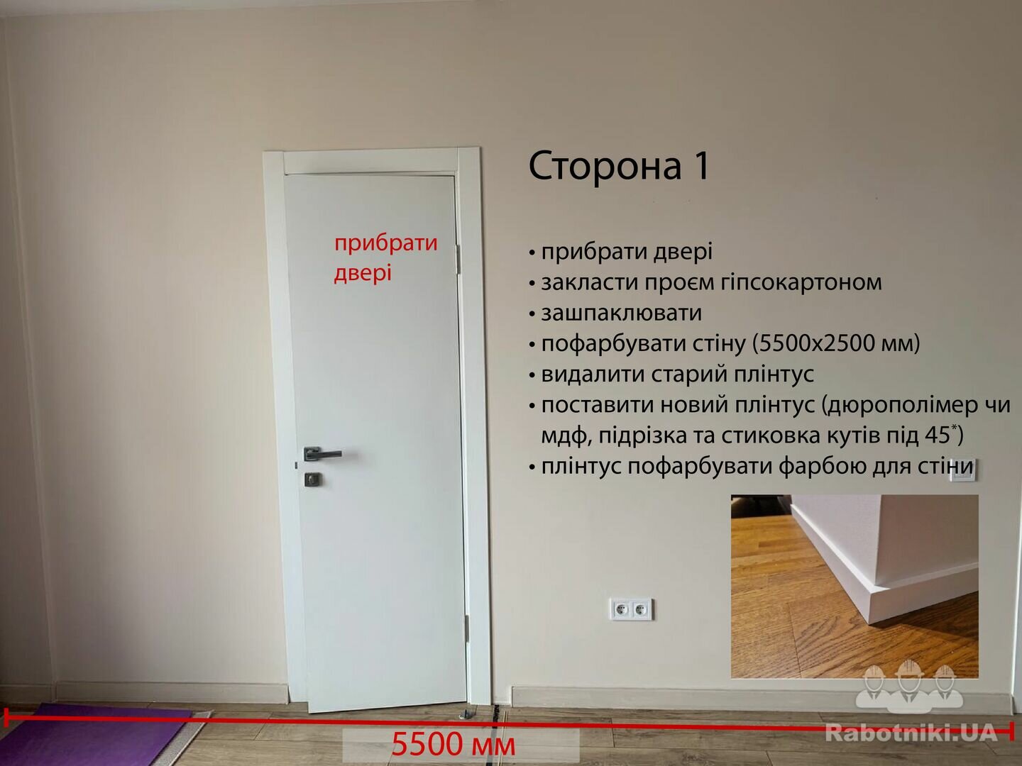Потрібно зробити роботу під ключ від демонтажу дверей до готової пофарбованої стіни.