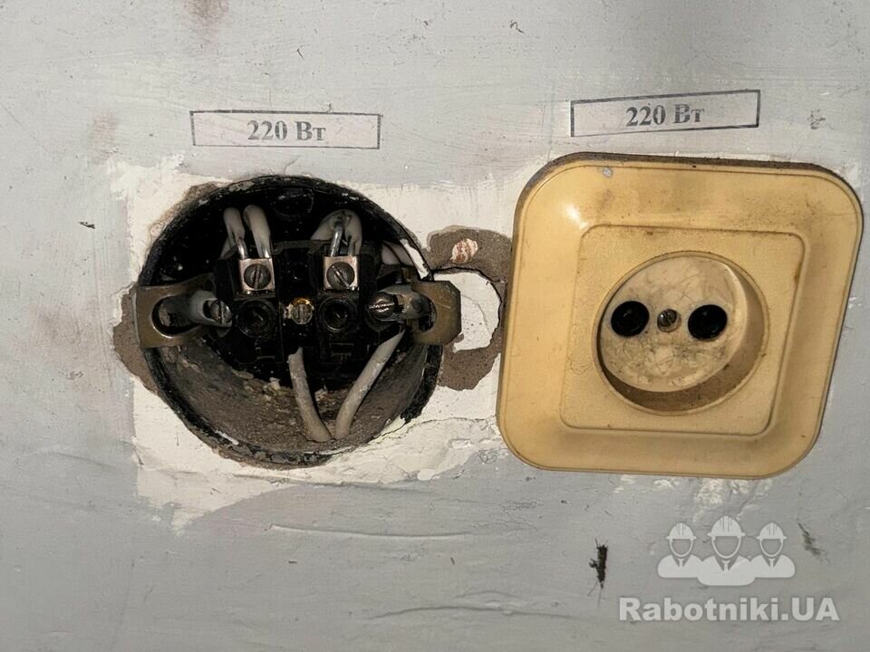 Розетки 17 шт радянського типу (діаментр 70, глибина 40) замінити на сучасні. Треба перевірити проводку. Як вона розведена. Які автомати за що відповідають.
