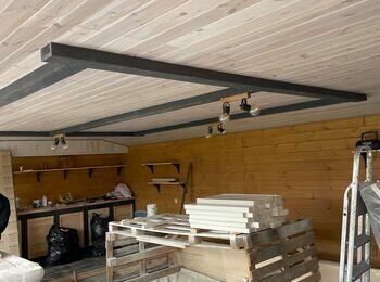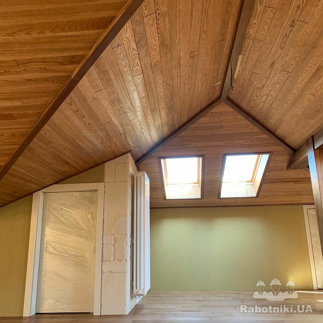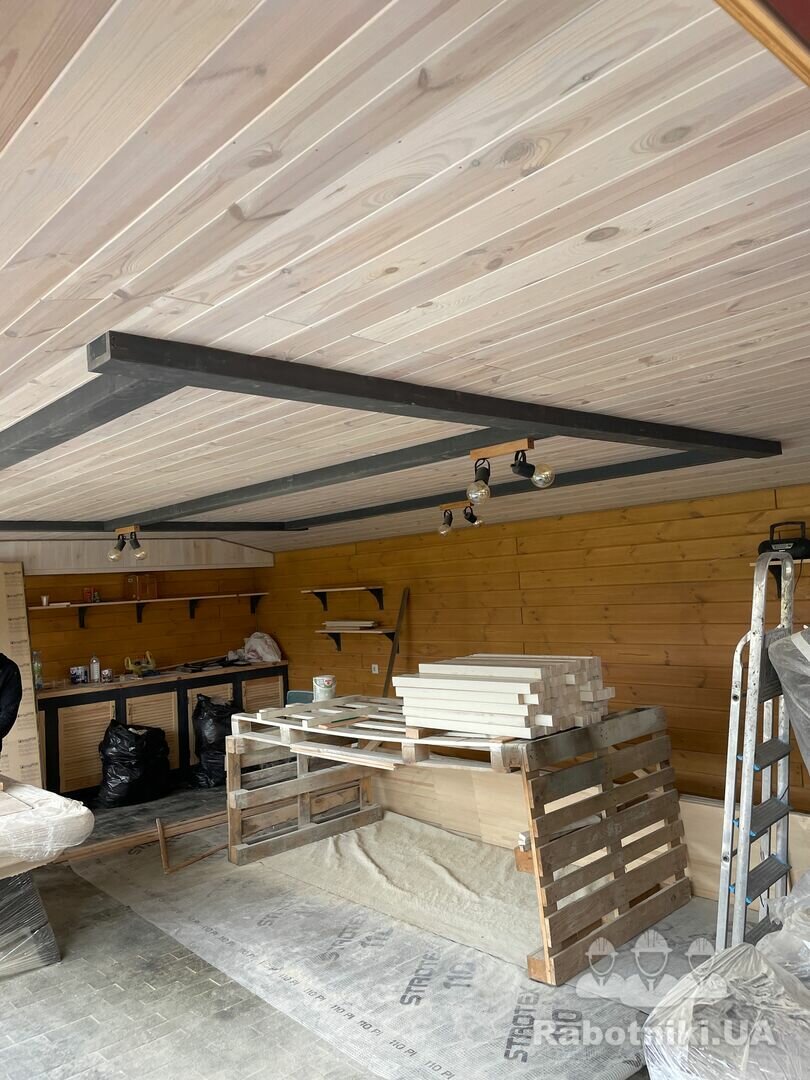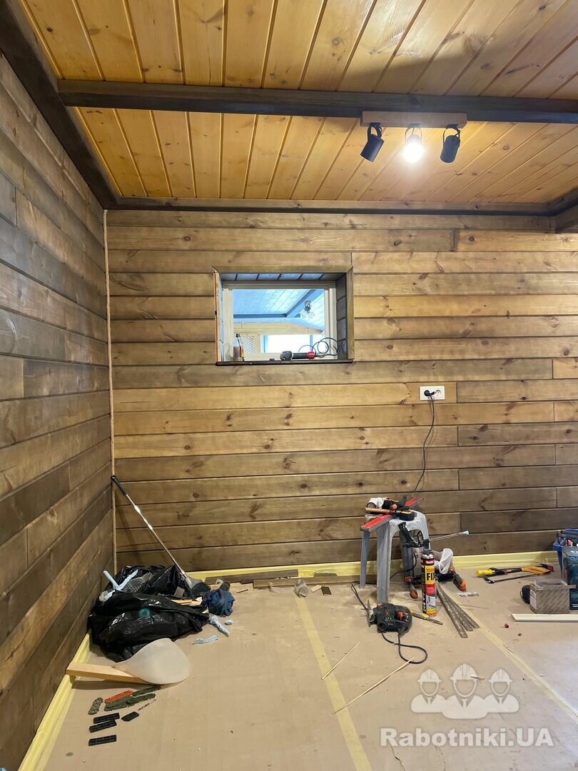 У одноповерховому приватному будинку потрібно зашити стелю фальш-брусом і деякі стіни вагонкою. Загальна площа зашиви становить до 100м2.