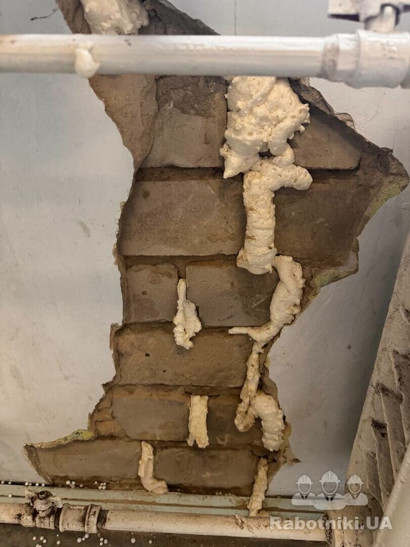 Зашпаклювати глибокі пошкодження у стінах 2-3 см. Дефектів небагато, проте глибокі.