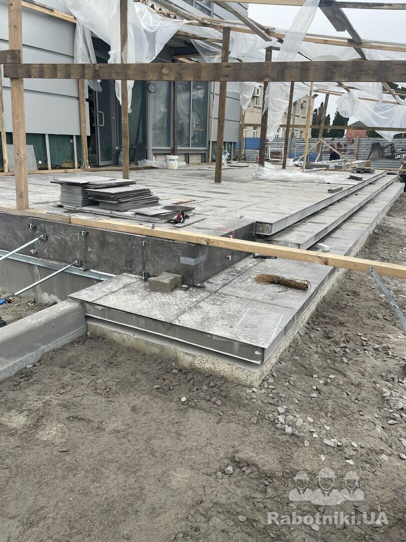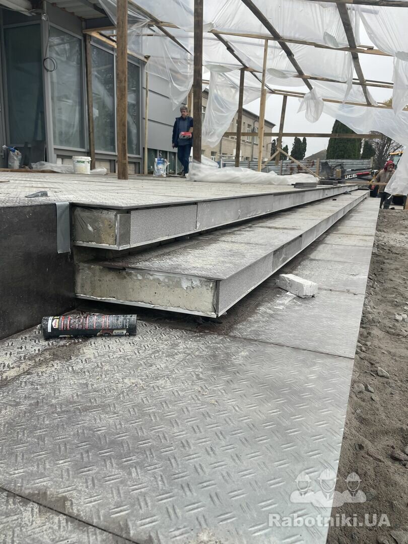 поріг вулиця: перкласти лопнувшу плитку, переробити (перекласти) торець сходин з профвлем мерседес, дозаповнити шви