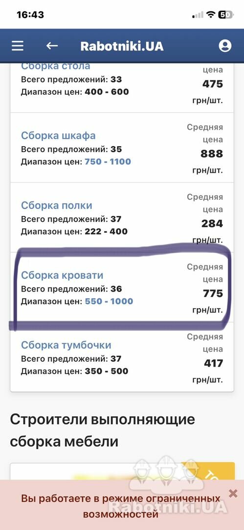 Сборка кровати 750 грн
