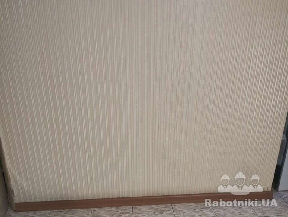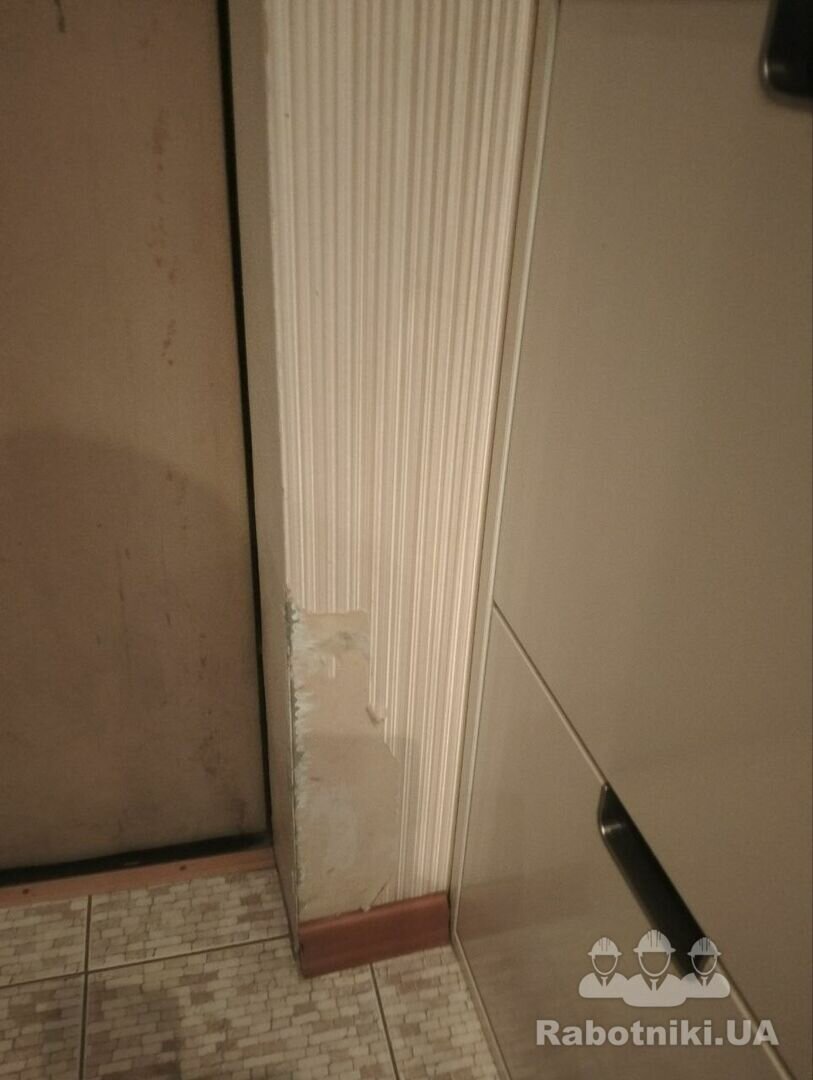 Частково зняти старі шпалери на стінах, приблизно 100 см на 50-60 см (1 стіна), 165 см на 50-60 см (2 стіна), 10см на 50-60 см (3 стіна) та поклеїти нові або пофарбувати