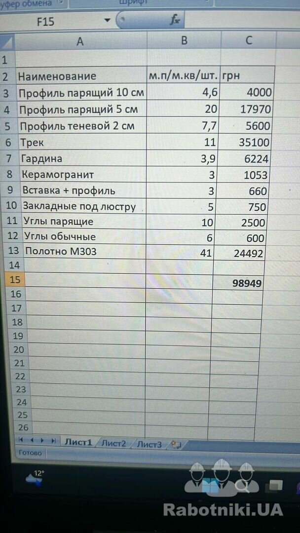 Дзвонив в декілька компаній по стелям, приїзджав майстер, робив заміри і прорахунок, нарахував на багато дорожче ніж я розраховував. В додатку його розрахунок та малюнок стелі.
