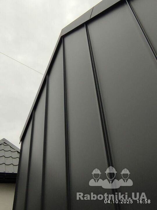Робота виконана на високому рівні. Олександр справжній професіонал, який уважно ставиться до кожної деталі. Обшивав деревяний каркас будинку металом (клік-фальц) у стилі барн-хаус усе зроблено акуратно, рівно й естетично. Майстер допоміг з вибором матеріалів, пояснив технічні нюанси та запропонував кілька практичних рішень. Видно, що має великий досвід і робить роботу як для себе.