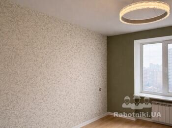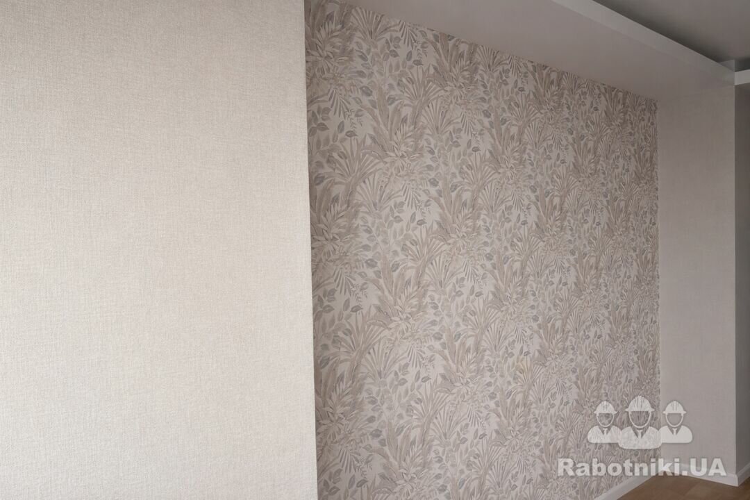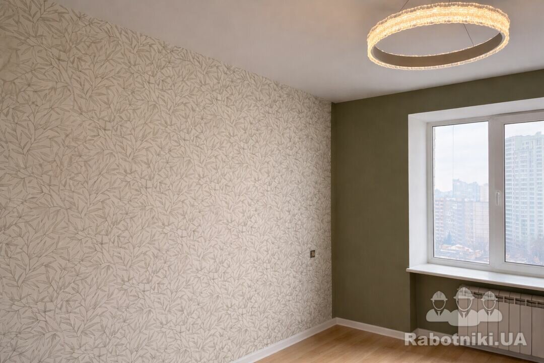 Якість роботи на високому рівні. Стіни були ідеально підготовлені, фарбування виконано рівномірно та акуратно, без розводів і дефектів. Шпалери поклеєні дуже точно: стики практично непомітні, малюнок підігнаний ідеально.