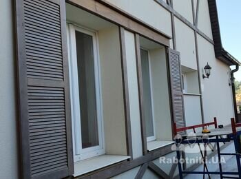 Виконання комплексу робіт із облаштування покрівлі, оздоблення фасаду мокрий+фахверк елементи із деревини, виготовлення віконниць, надбудова тераси.