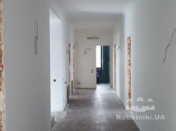 Підготування поверхні під фарбування. Шпаклівка откосів, грунтовка, обклейка вікон, стін, стелі плівкою, безповівітряне фарбування стелі, стін та откосів.