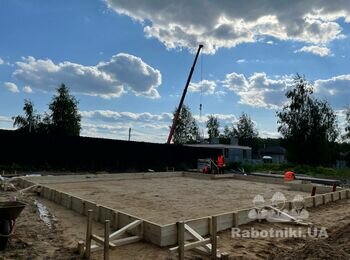 Будівництво плитного фундаменту для одноповерхового будинка в Білогородці.