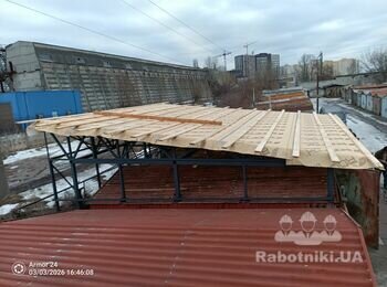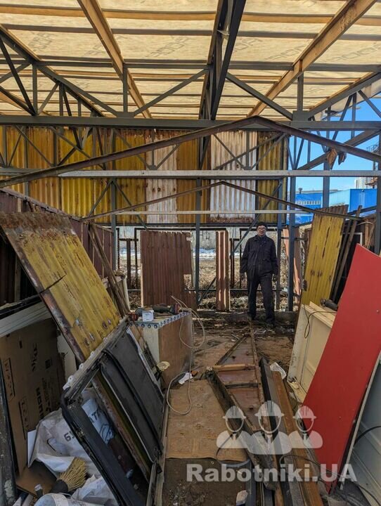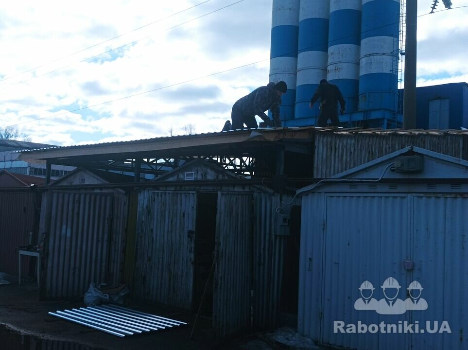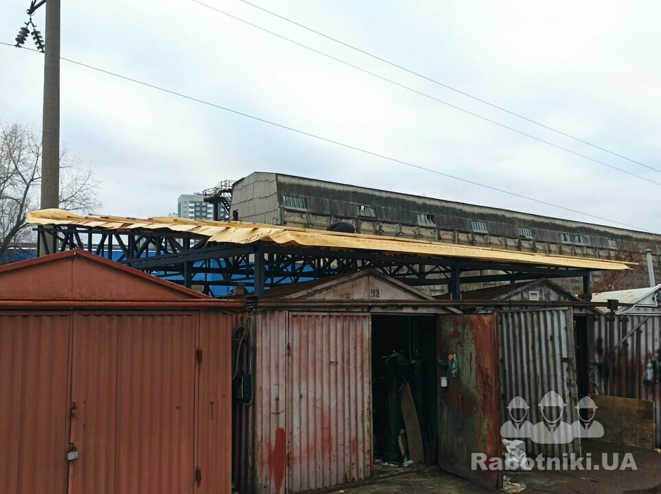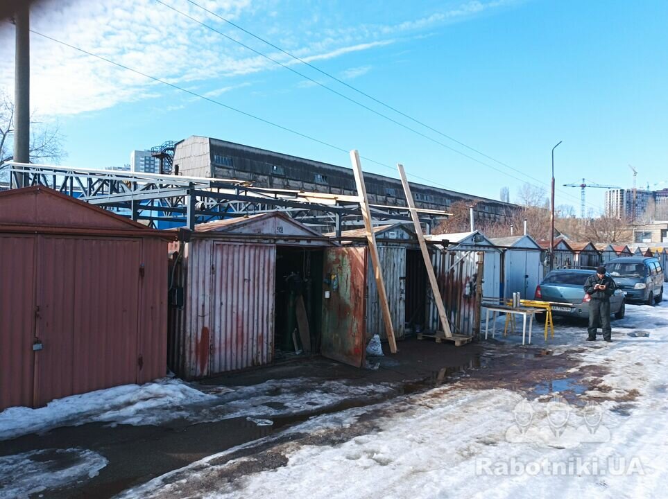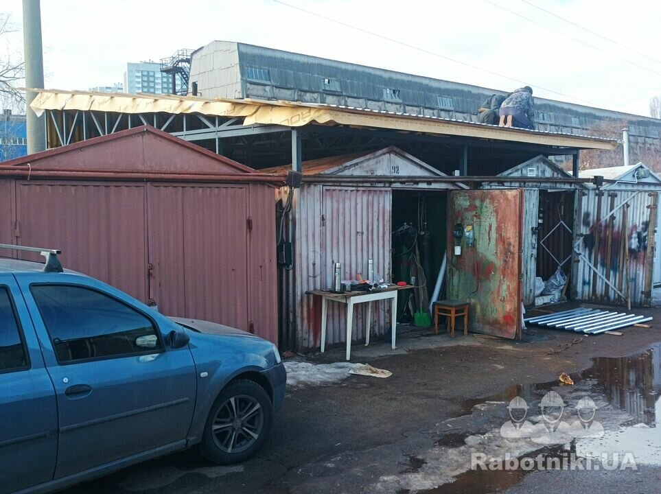 Два металеві гаражі які треба з'єднати в один. По суті, це новий каркас, дах і ворота. Деякі деталі старого гаражу думаємо використати в новій конструкції.