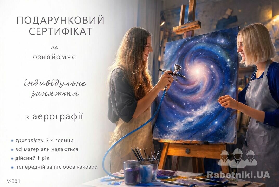 Подарункові сертифікати на індивідуальні навчання з розпису стін, з аерографії, та на написання картини.