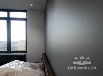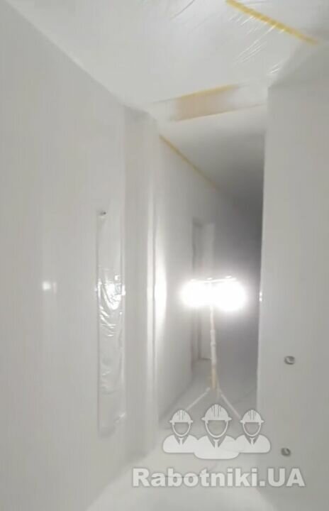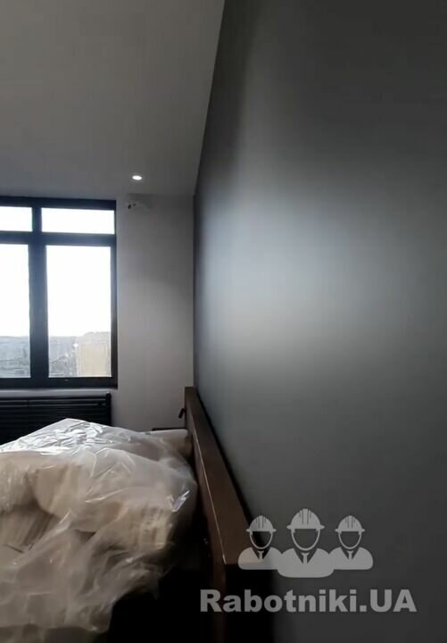 Підготовка поверхні повинно бути таким: очищення, шліфування жирафом штукатурки, грунтоивка, шпаклівка, шліфування фінішного шару, ґрунт під фарбування . Ґрунтування для кращого зчеплення фарби обовʼязково! Нанесення фарби краскопультом рівномірно, у 2 3 шари з проміжним висиханням.Фінішна перевірка якості покриття та чистоти приміщення. Результат ідеально рівні стіни, мінімальна витрата фарби, чиста робота й швидке виконання.