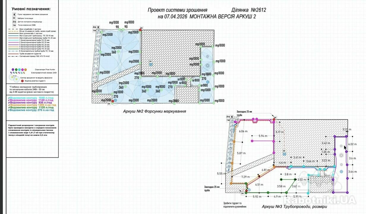 Доброго дня, бюджет вказано дуже приблизно, необхідно виконати монтаж системи поливу згідно розробленого проекту бажано на найближчий час.