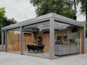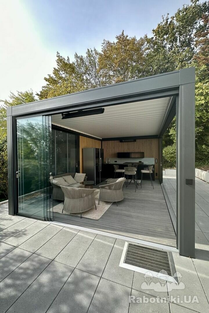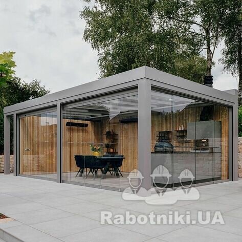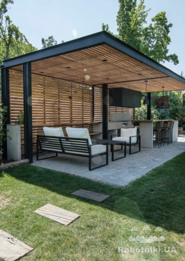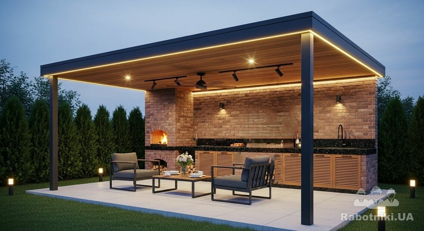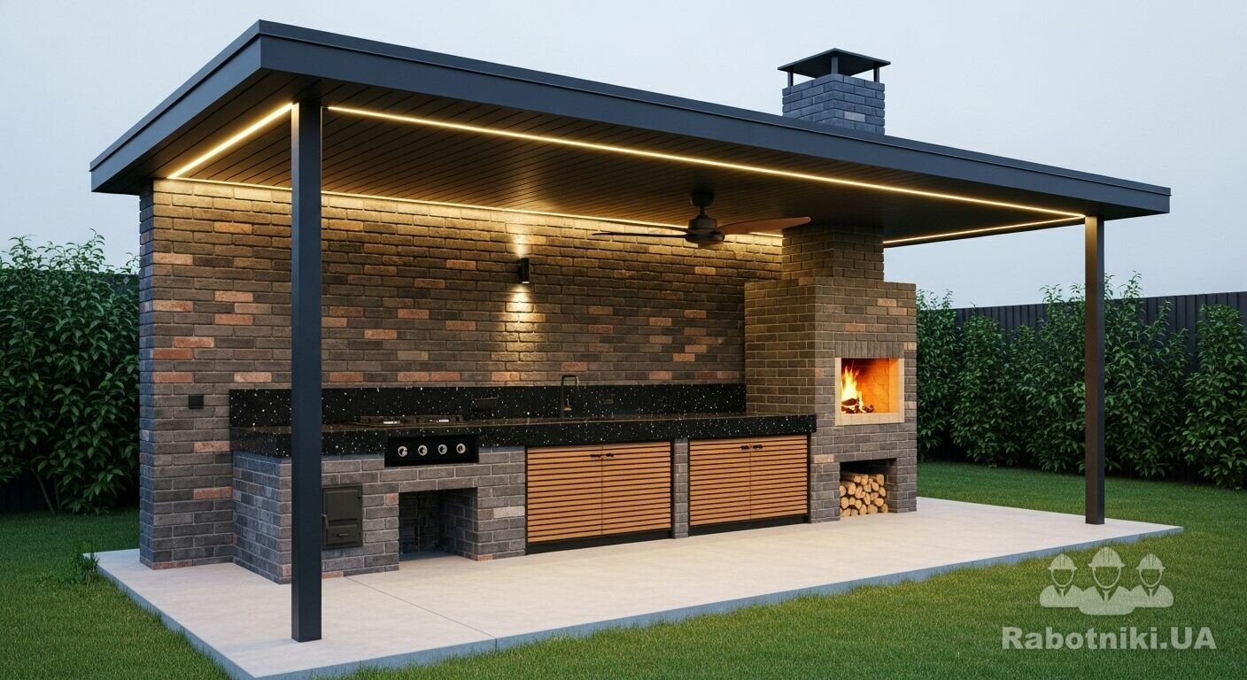 Вбудований мангал (прямокутної форми, як на фото-зразку).
