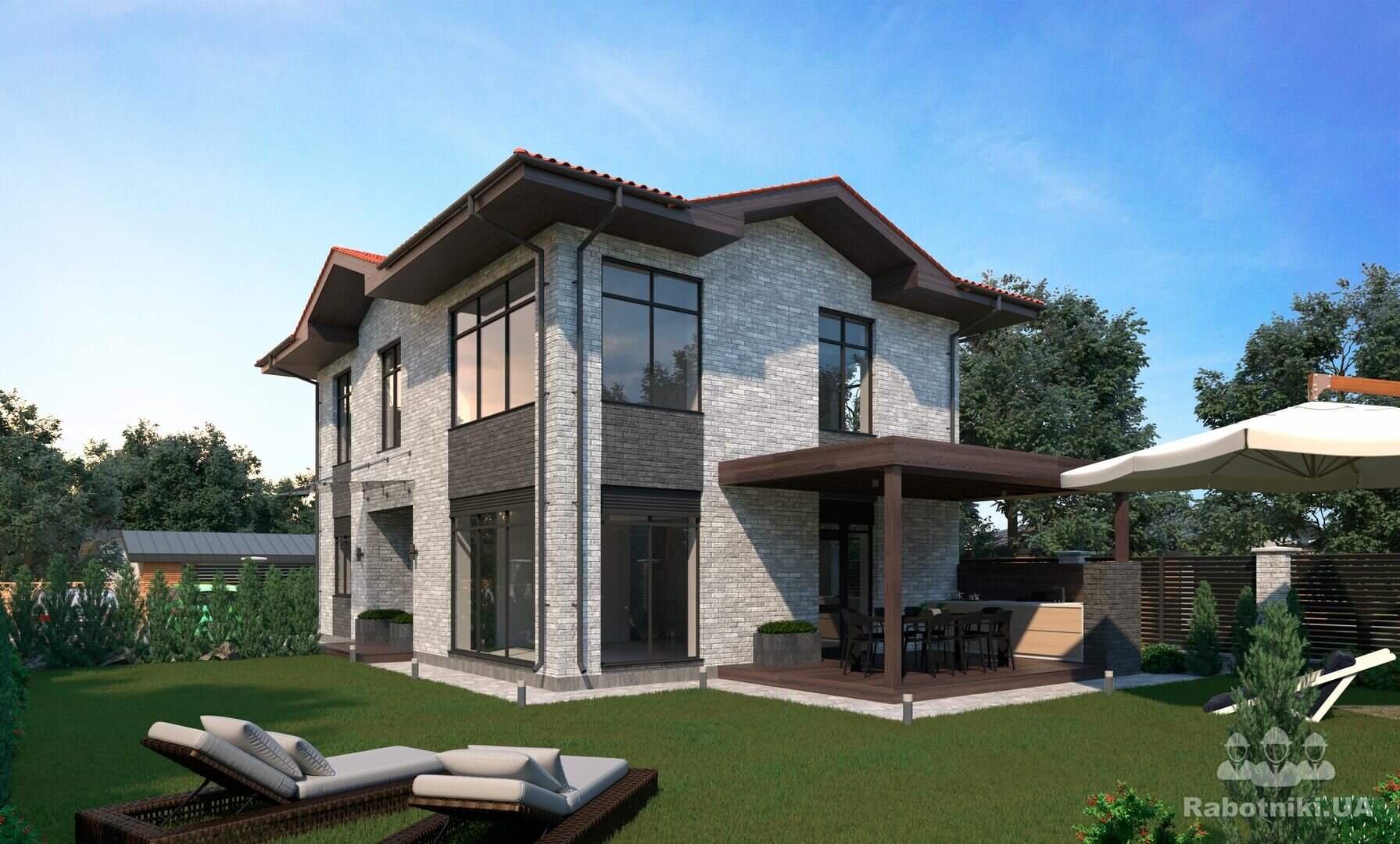 + розробку зонування/планування благоустрою території навколо, Ландшафтного дизайна, вхідної/в їзної групи, різноманітних зон відпочинку, підбір рослин та тротуарної плитки/доріжок, моделювання індивідуальних локацій, 3д візуалізацію цього, 2д плани, освітлення (нічна версія), 3д відео-ролик, 360 градусів панорами.