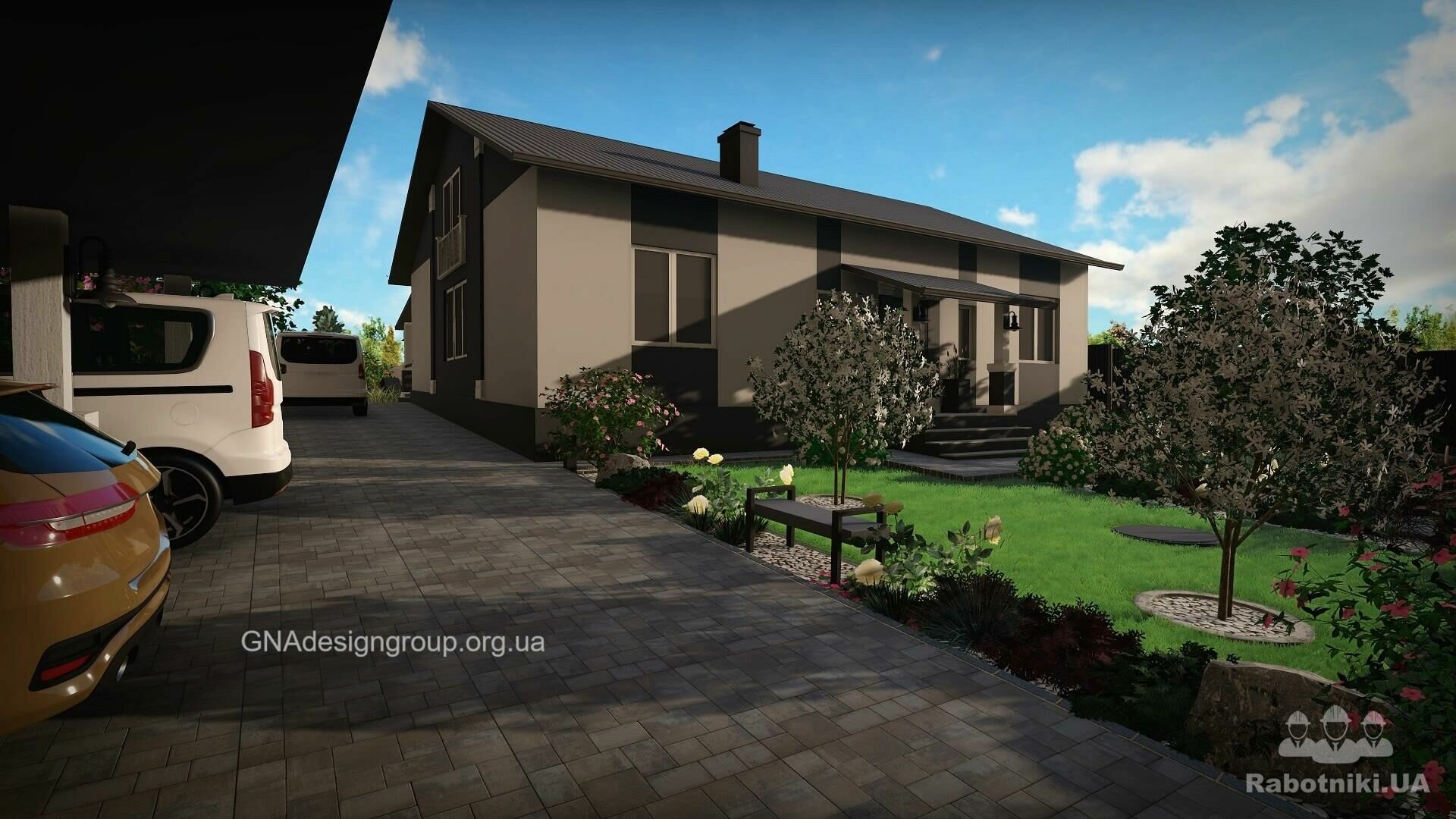 + розробку зонування/планування та проектування благоустрою території та Ландшафтного дизайна, вхідної/в їздної групи, тераси, навісу, різноманітних зон відпочинку, підбір рослин та тротуарної плитки, доріжок, моделювання індивідуальних локацій і т.д., 3д візуалізацію цього, 2д плани, освітлення (нічна версія) і т.д. 3д відео-ролик, 360 градусів панорами.