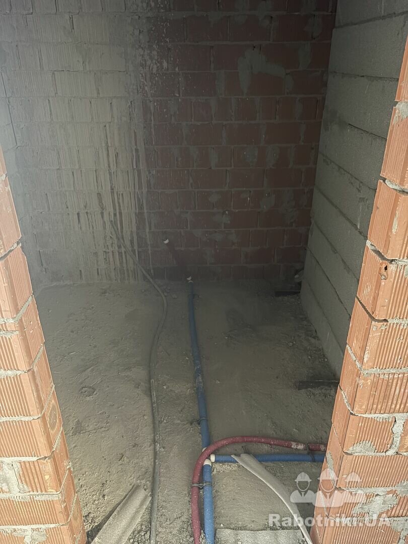 Обсяг робіт: штукатурка всього приміщення (41м2), розведення труб по сантехніці, санвузол під ключ (плиточні роботи, встановлення чистової сантехніки, також вкладання плитки на відкритому балконі