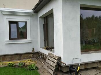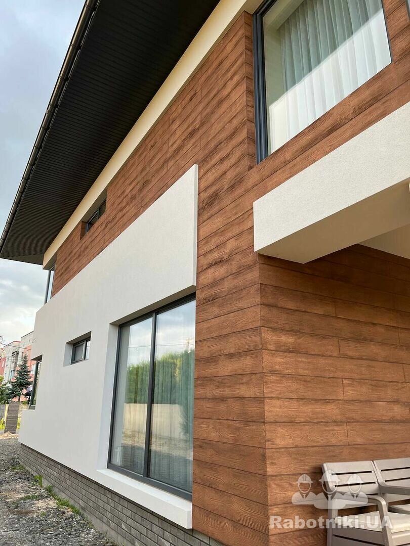 ✅ Нанесення декору на фасад (імітація травертину, дерева, цегли)
