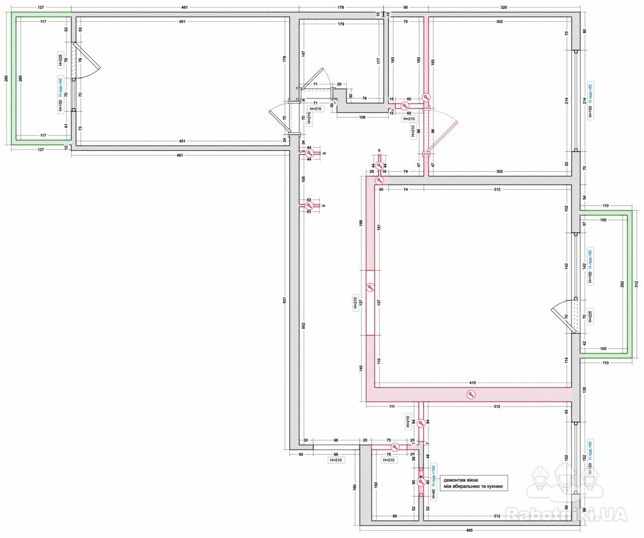 Потрібно знести міжкімнатні перестінки та демонтувати керамічну плитку