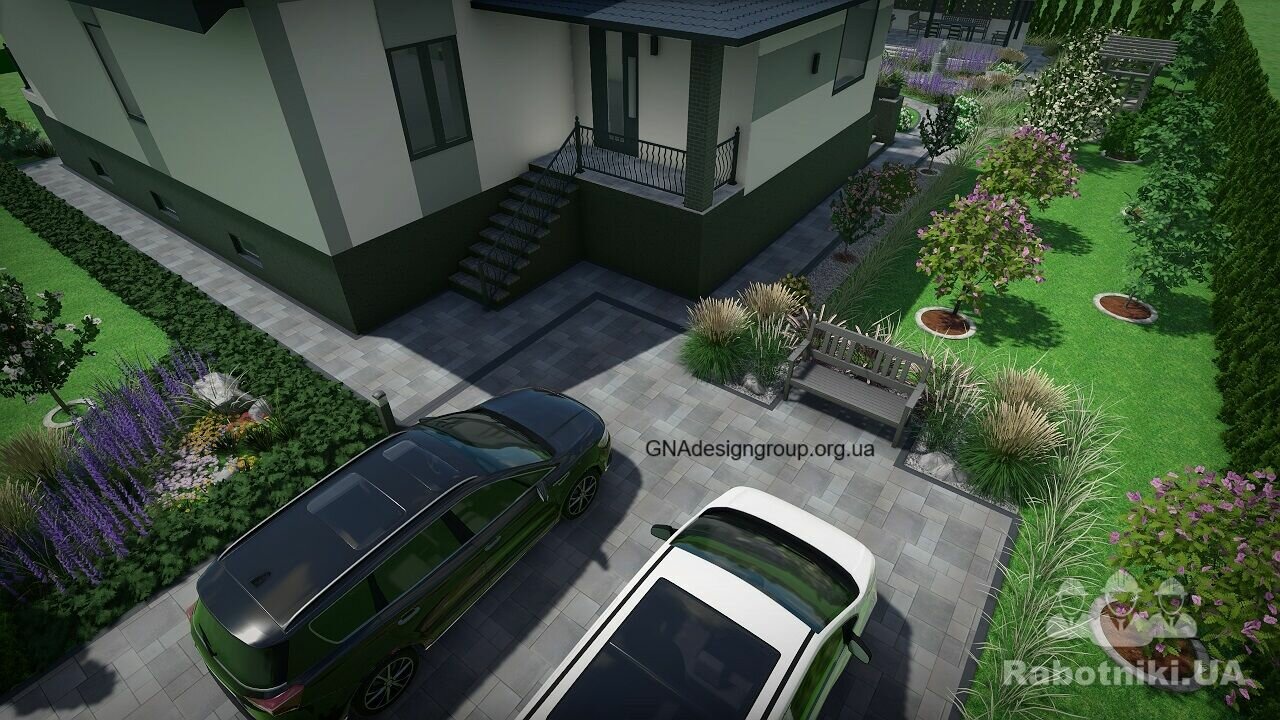 + розробку зонування/планування та проектування благоустрою території та Ландшафтного дизайна, вхідної/в їздної групи, тераси, навісу, різноманітних зон відпочинку, підбір рослин та тротуарної плитки, доріжок, моделювання індивідуальних локацій і т.д., 3д візуалізацію цього, 2д плани, освітлення (нічна версія) і т.д. 3д відео-ролик, 360 градусів панорами.