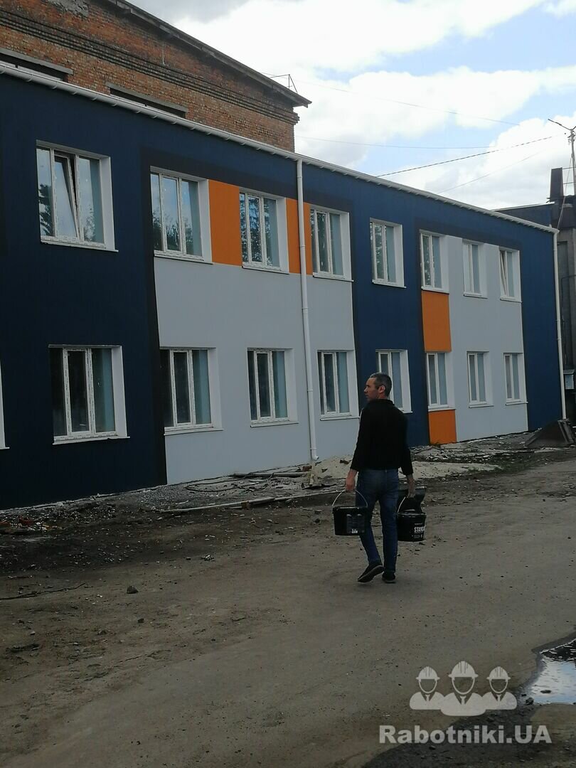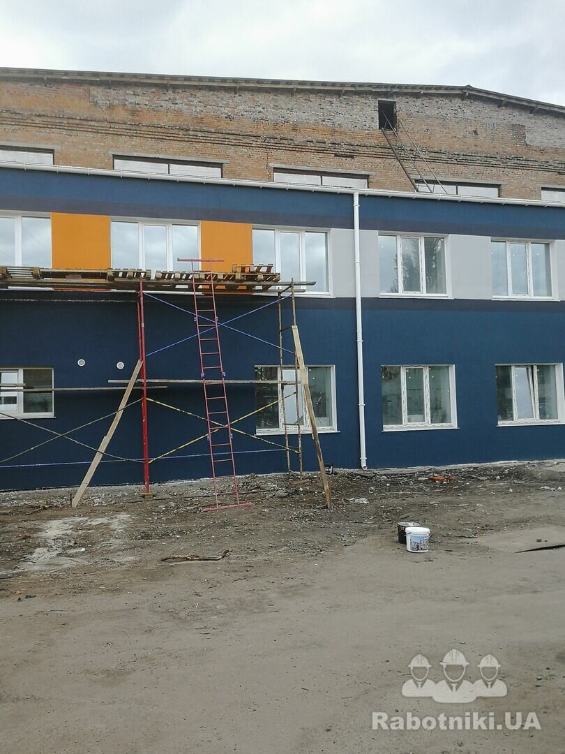 Необхідно виконати улаштування мокрого фасаду по вже існуючому полістиролу (пінопласт вже змонтований).