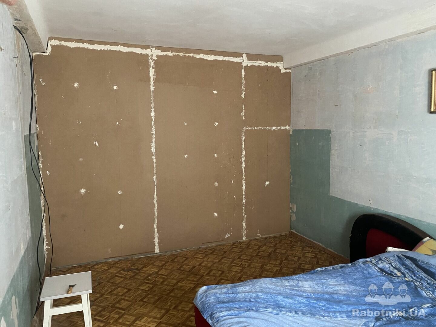 Оболонский район 1 этаж Капитальный ремонт комнаты : шумоизоляция потолка и одной стены,электрика,короб из гипсокартона по периметру потолка , подготовка стен к покраске, ламинат( стяжка?)