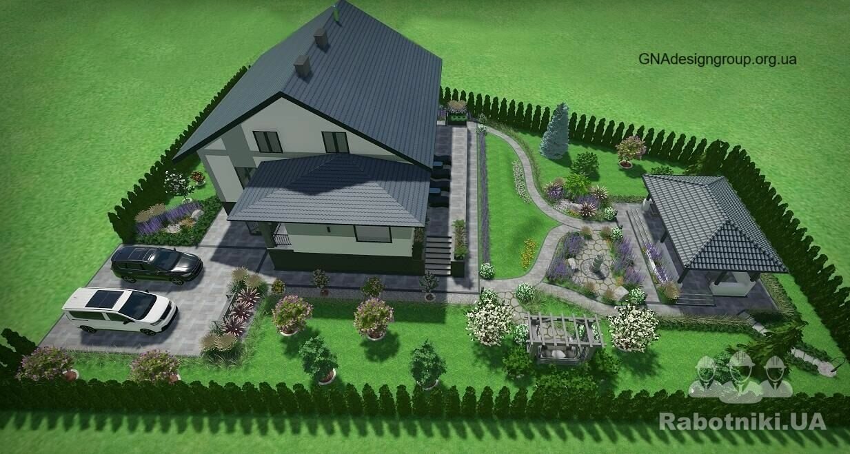 + розробку зонування/планування та проектування благоустрою території та Ландшафтного дизайна, вхідної/в їздної групи, тераси, навісу, різноманітних зон відпочинку, підбір рослин та тротуарної плитки, доріжок, моделювання індивідуальних локацій і т.д., 3д візуалізацію цього, 2д плани, освітлення (нічна версія) і т.д. 3д відео-ролик, 360 градусів панорами.