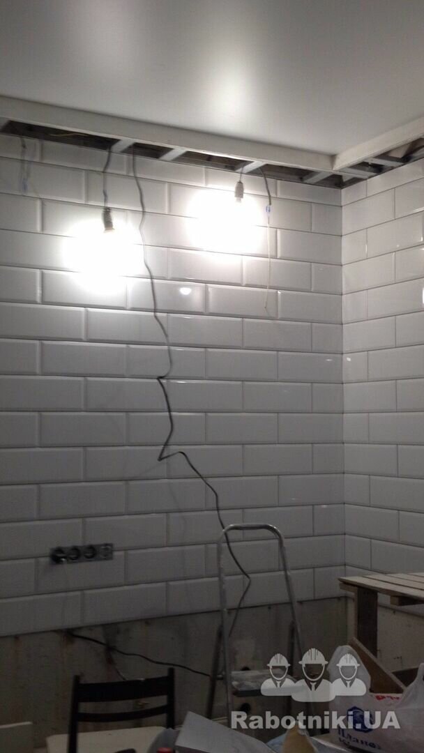 Кладка карамічної плитки на піщаному розчині (цемент + пісок) на поліуретанову основу і на неоштукатурену цегляну стіну 14 кв. м (ванна прибудова, флігель, приватний сектор на Ст. Балашівці, пер Петровського, 5 т. ***