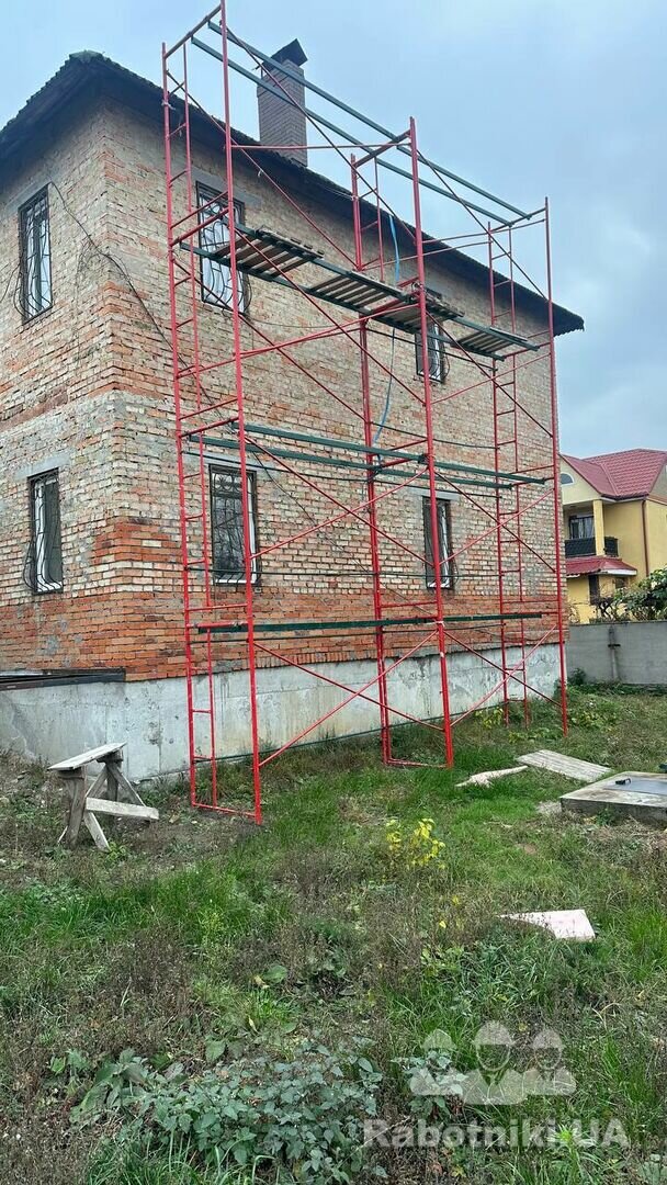 Без демонтажу, тільки установка профнастілу. Ліси стоять.