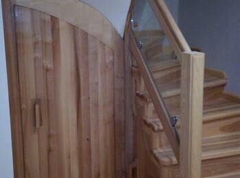 Сходи трехмаршевая. Є готова металева конструкція. Під сходами вбудована шафа для зберігання речей і нішею де обладнано місце для сидіння (міні передпокою).