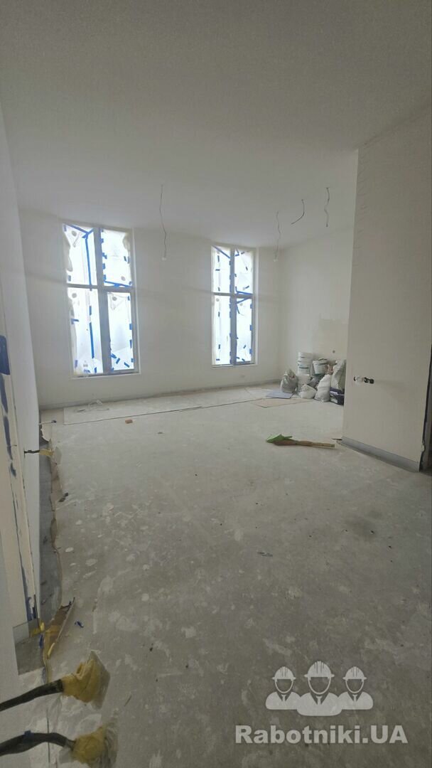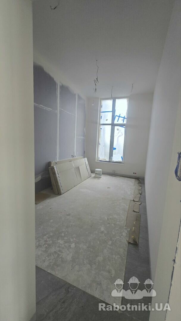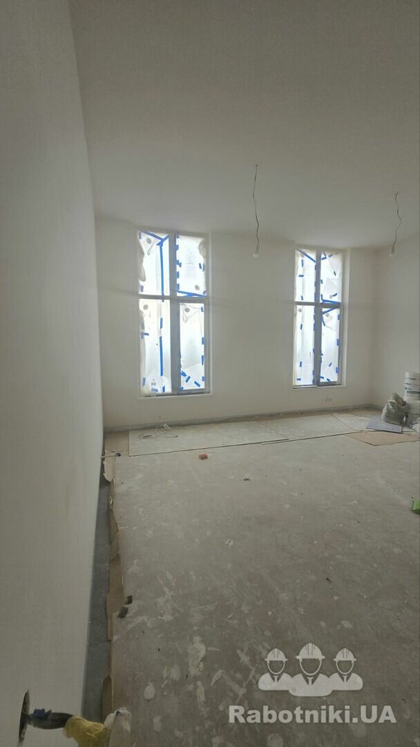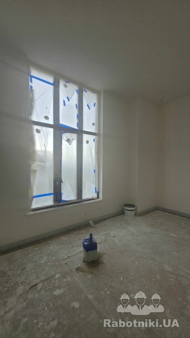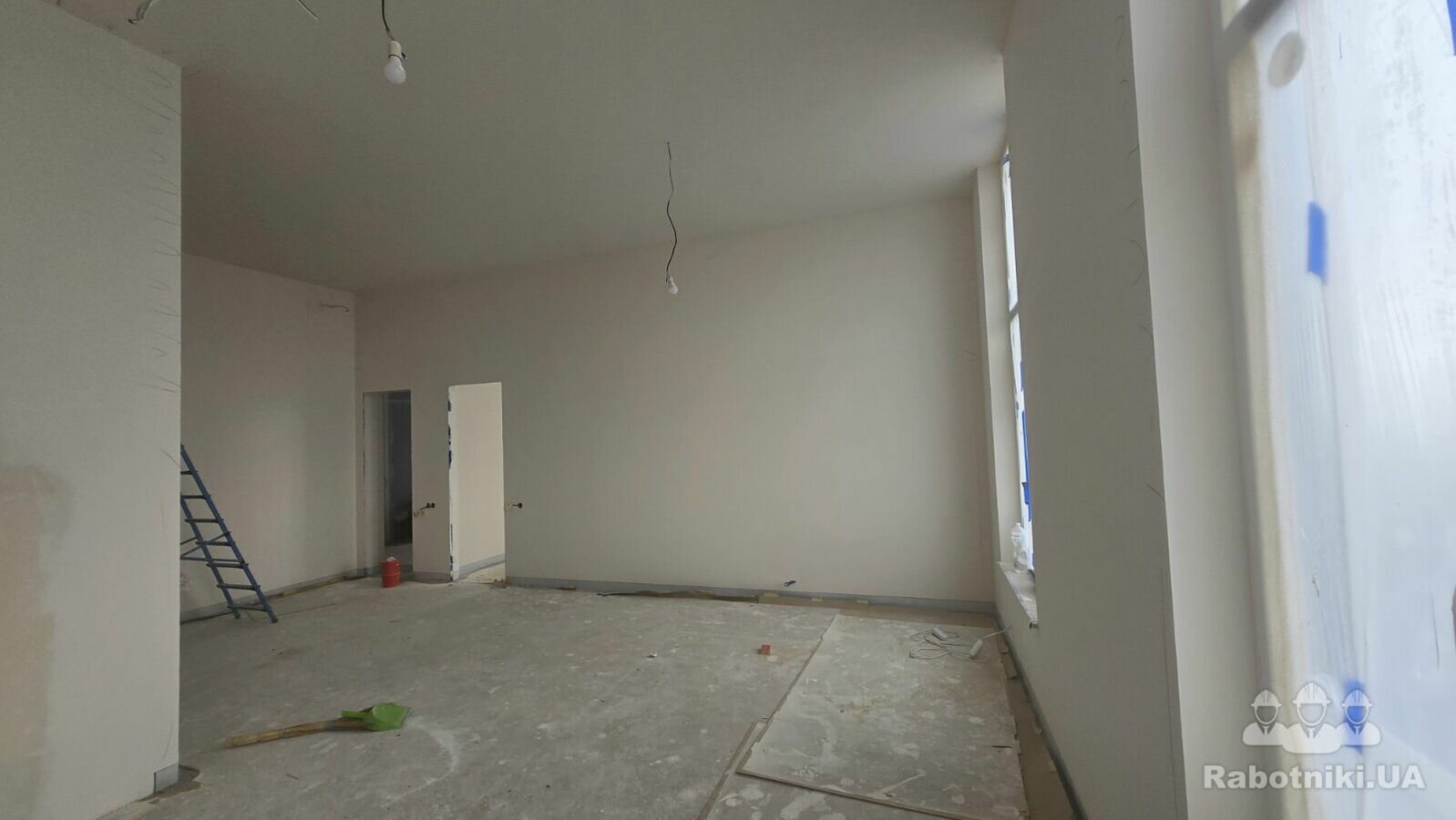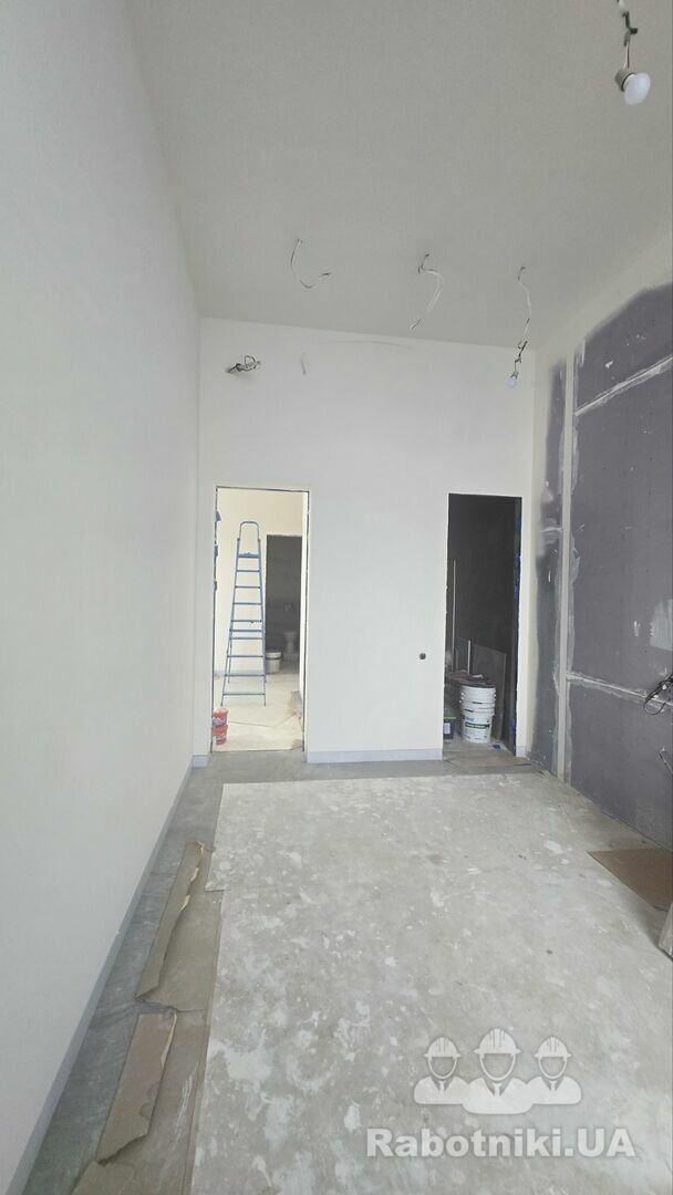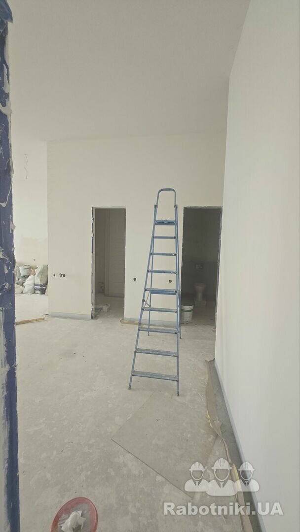 На стінах нанесена фінішна шпаклівка ...треба зашліфувати і дефектувати 2 стіни де буде підсвітка і покрасити всю квартиру 2 коляри Стіни 180кв.м стеля 85кв
