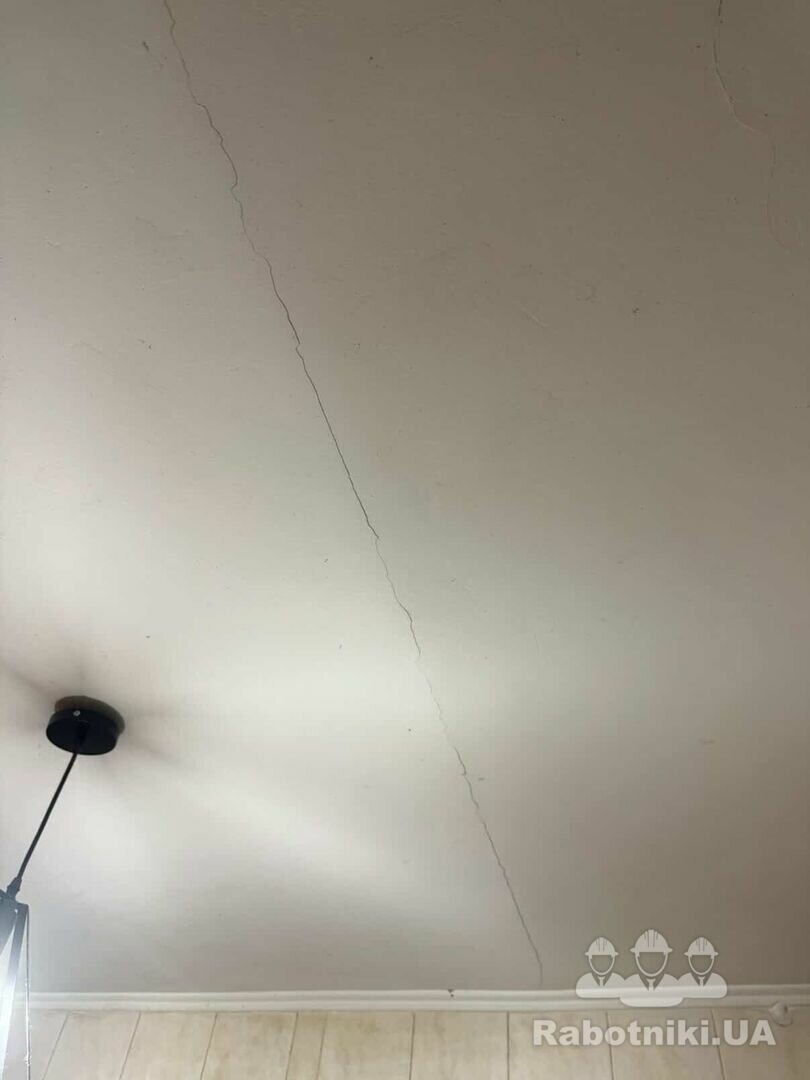 Тріснула стеля після демонтажу в сусідні квартирі. Потрібно заробити тріщини і перефарбувати