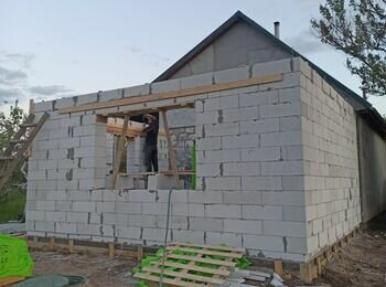 Добрий день, підкажіть - хочемо зняти стару дах з будиночка 7,3 на 4,3 метра, наздогнати 3 ряди газоблоку до 2, 70 (зараз обкладаємо його газоблоком - викладено 6 рядів), потім кинути нові балки, пароізоляцію, гідроізоляцію, осб плити і доповісти ще 3 ряди газоблоку на 90 см від нього вже робити нормальну дах - варіант односхилий, з кроквами, утепленням, як годиться - влаштувати типу мансарду, як варіант частина даху перекрити бітумної або металочерепицею, а частина метра 2 - 3 полікарбонатом або акриловими плитами, щоб був в мансарді такий собі зимовий садок. Почім будуть такі роботи? Географічно Берківці
