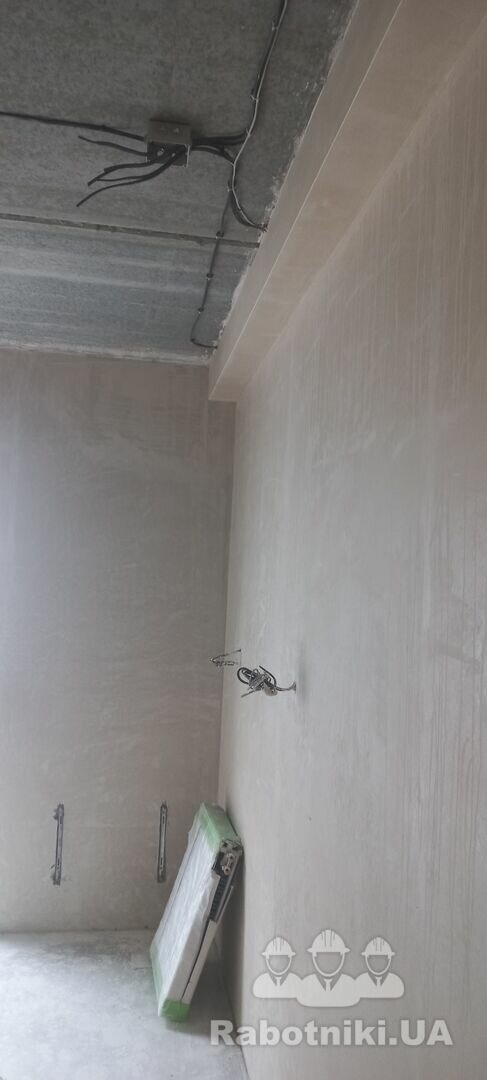 Штукатурка стен около 1,5 см потому что открытая проводка Дом внутри 80 квадратных метров нужно будет дополнительно уложить пенопласт и залить стяжку около 6см интересует стоимость с материалом