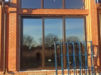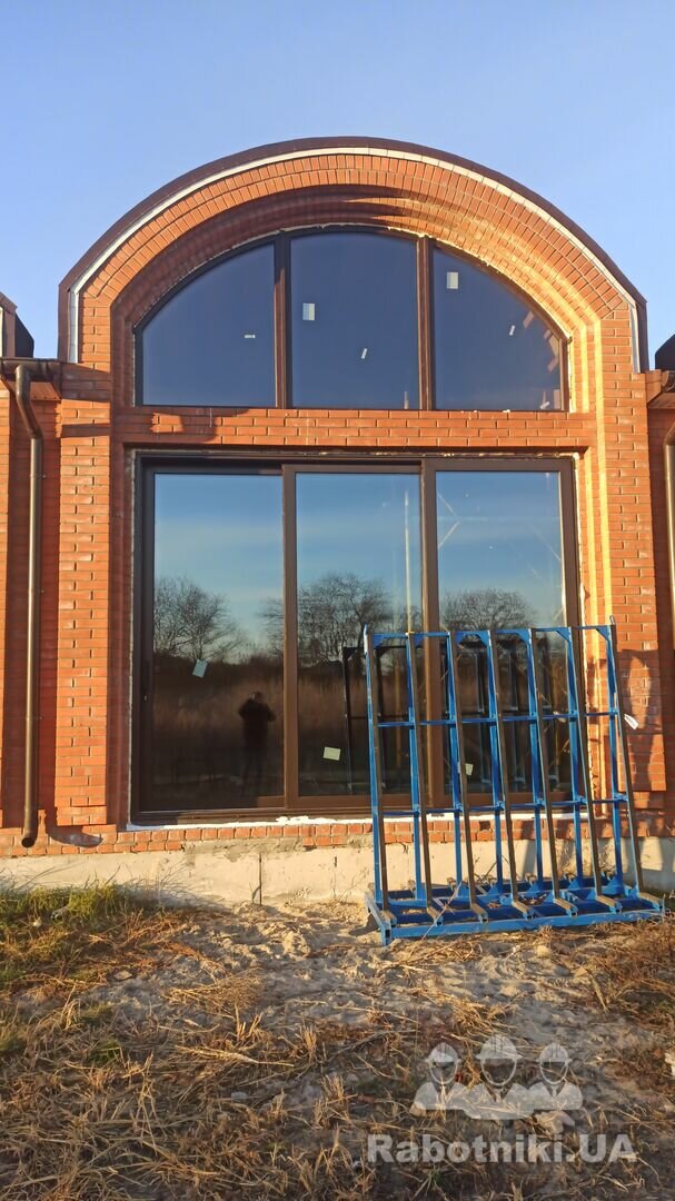 Бровари. Потрібно змонтувати 12 міжкімнатних одностулкових дверей. Двері з алюмінієвого профілю. Заповнення скло. Приклад двері на фото. Дверні отвори вже готові. лакована цегла.