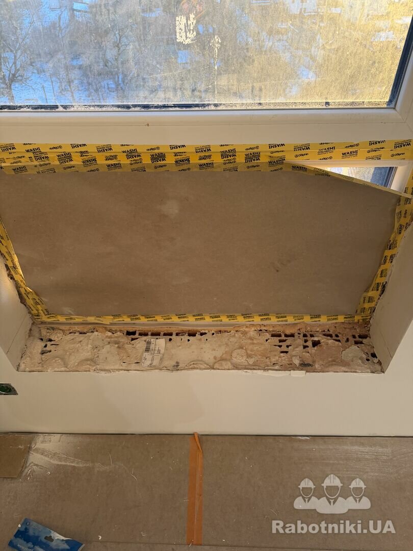 Потрібен монтаж трьох підвіконь. Один кутовий із продовженням у якості полички. Для кожного вікна відкоси. Загальна довжина приблизно 16 м