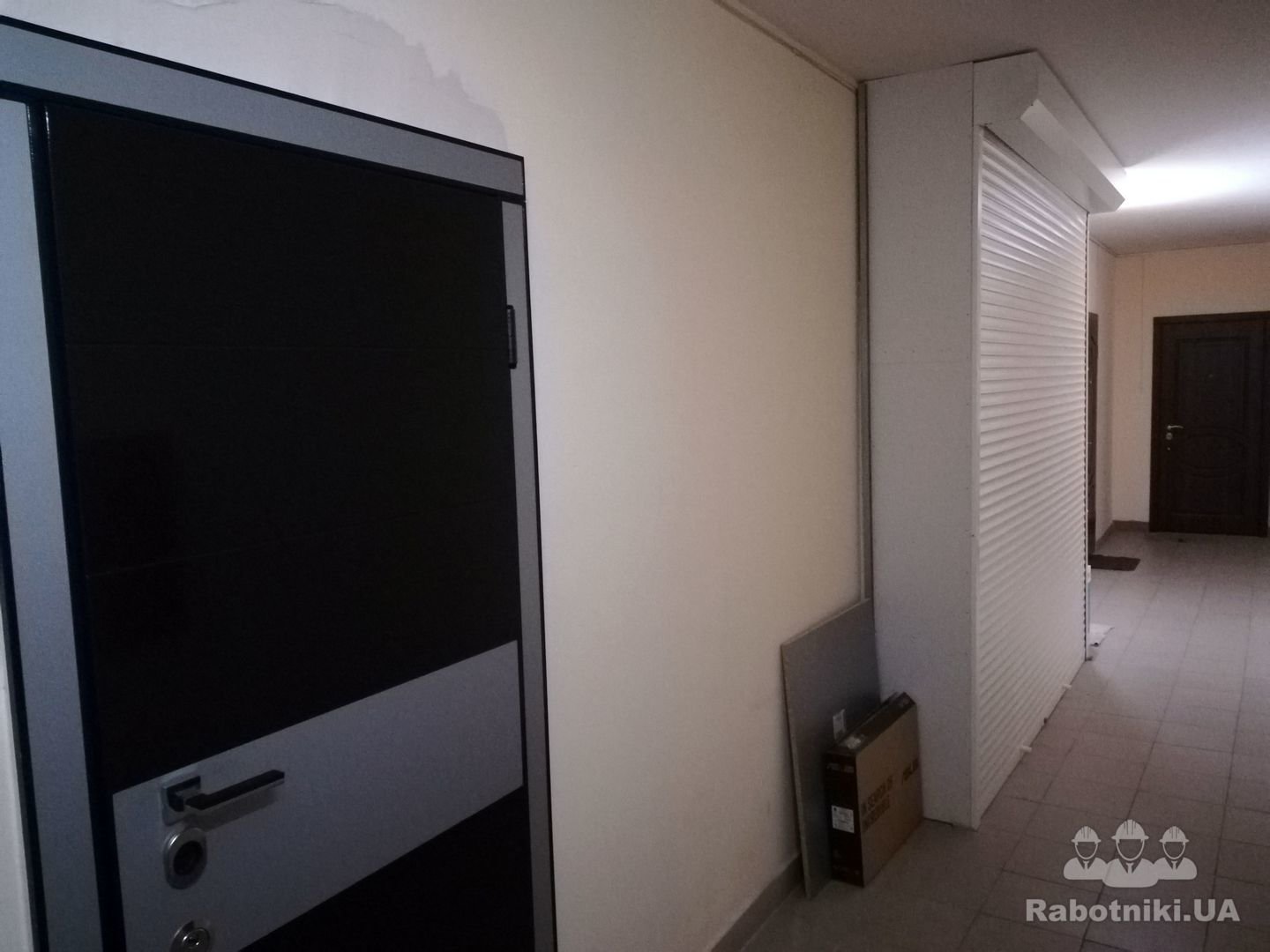 Необходимо смонтировать кладовку с полками и роллетой в коридоре. Размер ГВШ: 400*2700*2000мм. Примерный вид заказа показан на фото.