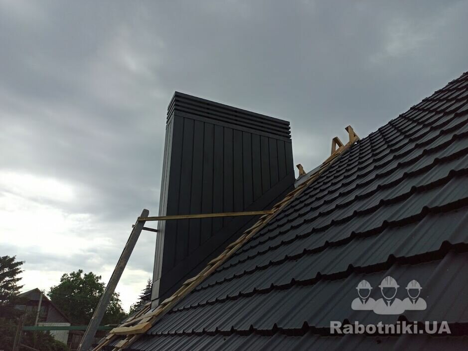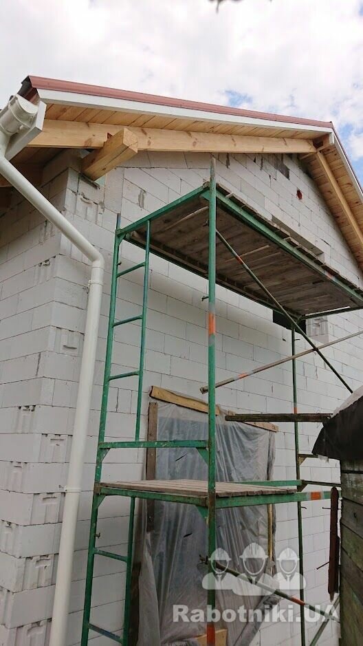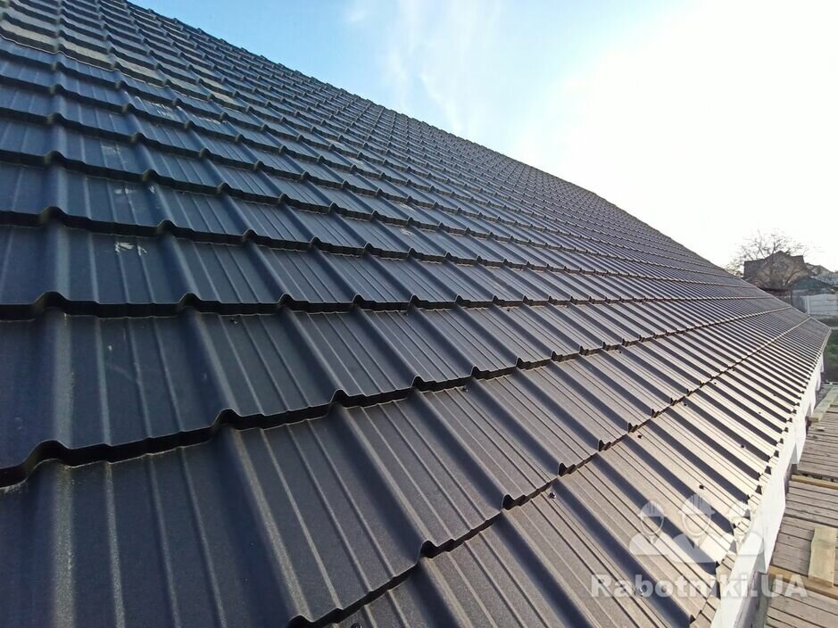Одноповерховий будинок.Укладка балок перекриття,покрівля з металочерепиці. Двух скатна,160м кв. Надам перевагу тим хто вміє читати проекти.