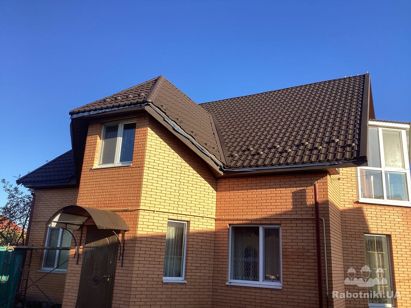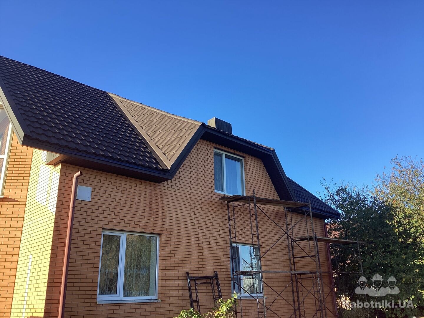 Потрібно встановити жолоб , та труби на злив (матеріал підрядника) зроблено підшивку . Будинок півторачка, криша двускатна з еркерами.Довжина жолоба + труби сумарно складає 41м/п.